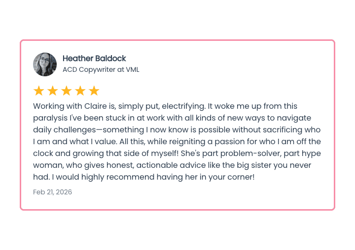 You've built a real career. You've put in the years, earned the title (or something close to it), and on paper, things lookโฆ fine. Maybe even good. But something's off. โ If you've been feeling the itch to energize your career, I'd love to tell you about my 90-Day Coaching Program: Clarity, Confidence, and Compensation. It's private, it's intensive, and it works: